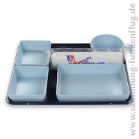 Trans International Airlines (TV) Business Class, Tischgedeck |